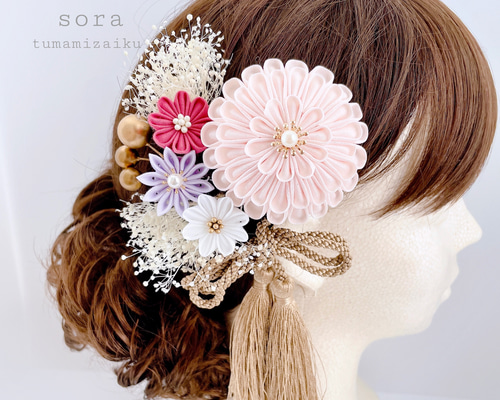 - レディース > ヘアアクセサリー > ❁︎nami様❁︎ 成人式 和装 髪飾り ヘッドドレス つまみ細工×帯重ね つまみ細工髪飾り【菊ピンク】成人式 七五三 和装 着物 浴衣 結婚式