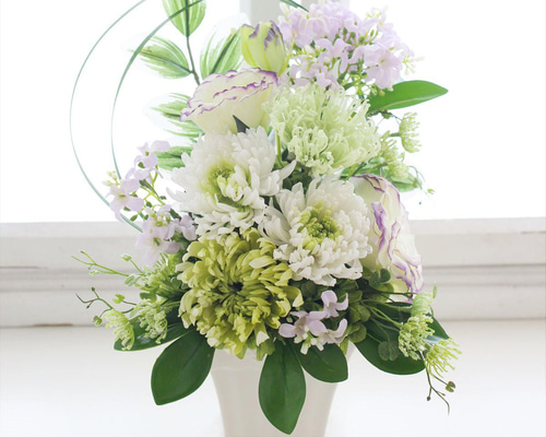 - フラワーアレンジメント > プリザーブドフラワーアレンジメント > お供え用 おおきめ仏花 2個セット プリザーブドフラワーアレンジ 白緑 ea630b980312ea5597a60e52f63493