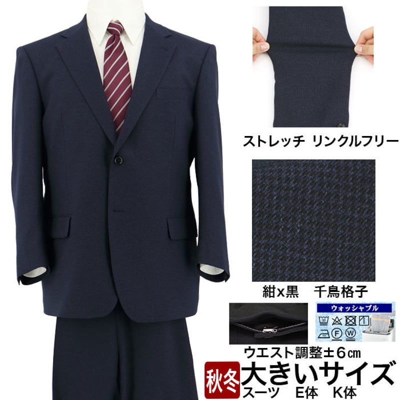 新品 ニューヨーカー 千鳥格子 スーツ セットアップ フォーマル 大きいサイズ 31-2HEC61】大きいサイズ スーツ 紺 千鳥格子 ストレッチ リンクル