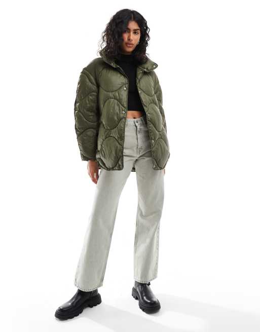 ジャケット・アウター YOKE Quilted Parka/ JJXX oversized quilted jacket with high neck in green | ASOS